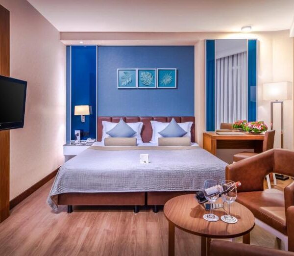 Rooms at Baia Lara Hotel include free WiFi, a flat-screen TV, air conditioning and floor-to-ceiling windows. Safety deposit box, minibar and an electric kettle are provided. Private bathroom comes with a hairdryer and a shower or bath.