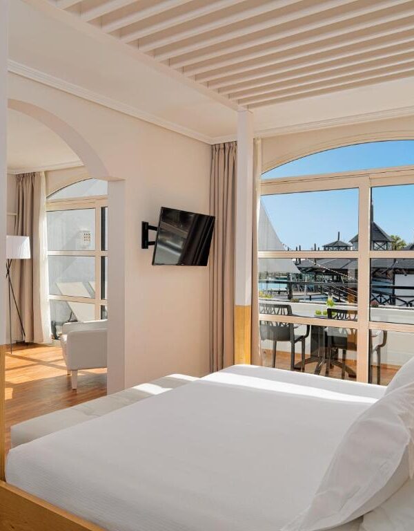 H10 Rubicón Horizons Collection is set in white-washed buildings around a lagoon-style pool in the Lanzarote fishing village of Playa Blanca. Overlooking La Mulata Beach, it features a spa and 10 restaurants and bars. Each air-conditioned room at the H10 Rubicon Palace Hotel is spacious and bright. All rooms have flat-screen TVs with satellite channels. Guests can hire beach towels at reception. Two buffet restaurants offer show cooking and themed dinners. À la carte options include The Steakhouse, which offers American specialties; the Dolce Vita features Italian cuisine and Sakura serves fusion-oriental cuisine. Guests can also enjoy a drink at the Piano Bar, Sports Bar, Mike’s Coffee, or La Choza pool bar. The Despacio Spa has an indoor pool with hydromassage beds, Turkish baths and a sauna. There is also a gym and treatment booths. For children there are clubs for different ages, with entertainment provided, as well as Daisy Adventure, which offers a pirate ship and water games. There are regular ferries to the neighboring island of Fuerteventura from Playa Blanca Port, 10 minutes’ drive from the Hotel H10 Rubicon Palace.