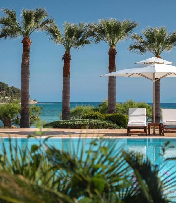Overlooking the azure waters of Cape Sani, the Sani Beach offers a lagoon-style swimming pool, a spa centre and restaurants with international flavours and Greek cuisine.